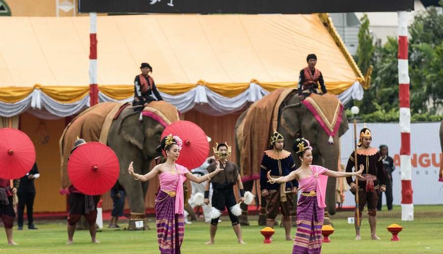 Festivities kicked off on Thursday March 8th on the polo pitch located on the banks of Bangkok’s River of Kings, the mighty Chao Phraya. The early morning proceedings began with a traditional blessing ceremony with monks placing sacred garlands over the necks of the stars of the event, the ex-street elephants taking part. Thailand’s last elephant spirit men (Kru Ba Yai), who possess spiritual control over all of Thailand’s elephants, also presided over the early morning rituals.