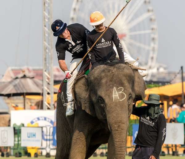 The match of the day was between Johnnie Walker Blue Label captained by Thailand’s Elephant Polo President, Christopher Stafford and King’s Cup debutants, ‘Challenge Everything’ from New York, captained by David Partridge. The first chukka ended with Challenge Everything ahead by a nail biting 3-0. By the end of the second chukka, seasoned veterans Johnnie Walker Blue Label made a stunning comeback due to the outstanding prowess of player Bjorn Richardson, scoring five goals in a row, securing a victory of 5-3.