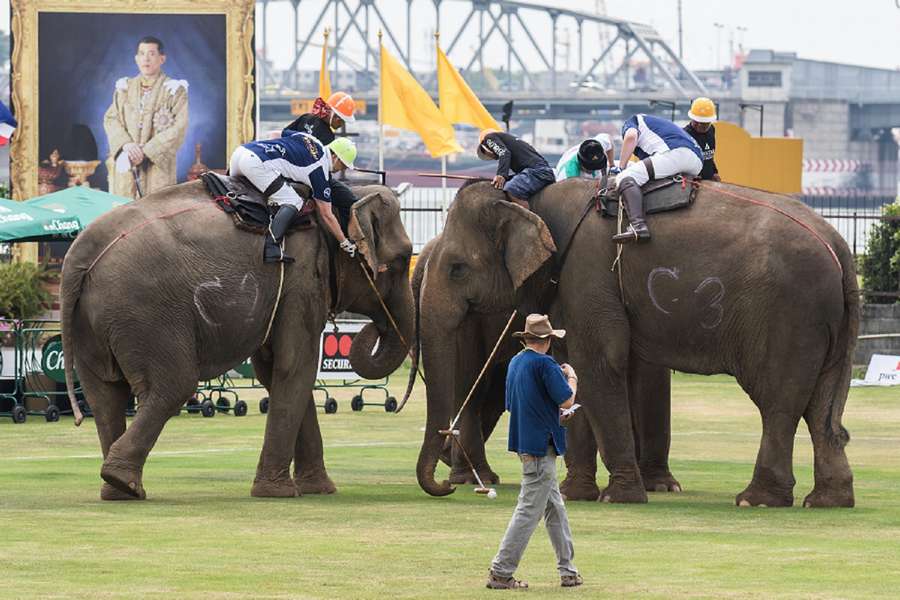 The match of the day was between Johnnie Walker Blue Label captained by Thailand’s Elephant Polo President, Christopher Stafford and King’s Cup debutants, ‘Challenge Everything’ from New York, captained by David Partridge. The first chukka ended with Challenge Everything ahead by a nail biting 3-0. By the end of the second chukka, seasoned veterans Johnnie Walker Blue Label made a stunning comeback due to the outstanding prowess of player Bjorn Richardson, scoring five goals in a row, securing a victory of 5-3.