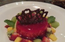 To bring everything to a close, Chef Andreas provided us with a spectacular set of desserts, which was music to the ears of our review team’s sweet tooth. Short of providing a single dish, we were given a delectable array of seven different desserts. The Panna Cotta came first and was a highlight: In a beautiful raspberry sauce and a diced assortment of fruits such as mango, kiwi and raspberry, it was soft, fluffy, well balanced, creamy in the aftertaste, smooth to the touch and aromatic to the palate. The dish came with a confectioned chocolate crown, which provided a contrasting but very complementing taste. The lemon tart was a true delight as well: incredibly fluffy meringue, whose sweetness was the perfect balance to the gentle taste of the crust. Then came the home made sorbet, a wonderfully distinct dessert because of its sensational sweetness and tanginess, which ended on a subtle aftertaste. The tiramisu was for all the coffee lovers, the aroma of which engulfed the first bite. The fresh cream balanced the strike of the cinnamon and provided a rounded and delicious dessert. We were then given a genuine taste of chocolate, with a sensationally well prepared truffle. Deliciously dark, incredibly creamy and resoundingly aromatic, its cracking shell that melted in the mouth combined with the intensity of the chocolate, made for every chocoholic’s dream. We ended in a beautiful apple pie, the moisture and softness of which took us by delightful surprise. The freshness of the apple and the tenderness of the dough was sensational.