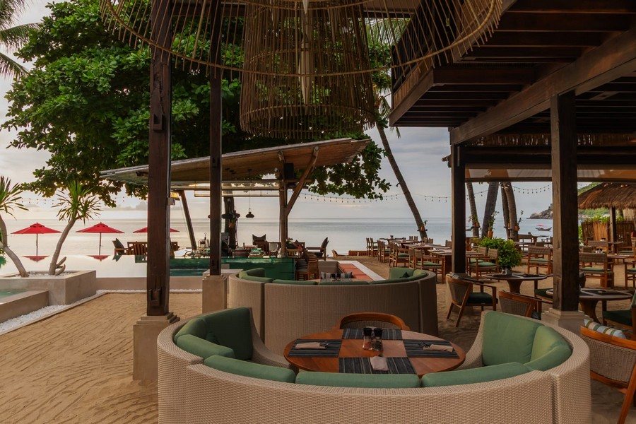 Dining at Anantara Rasananda unfolds like a journey through distinct culinary worlds, each shaped by its own atmosphere, rhythm, and sense of place. At the heart of the resort, Bistro on the Beach captures the quintessential spirit of island dining, set directly along the shoreline where the scent of the sea mingles with the aromas from the kitchen. The bistro serves as the resort’s all-day hub, beginning with sun-washed breakfasts where tropical fruits, artisan breads, and made-to-order specialties set a leisurely tone for the morning. As the day progresses, it shifts seamlessly into breezy lunches and elegant candlelit dinners, with menus that highlight fresh seafood, Mediterranean inspirations, and refined Thai classics. Its beachfront setting, steps from the sand, makes every meal feel grounded in the natural beauty of the island.
