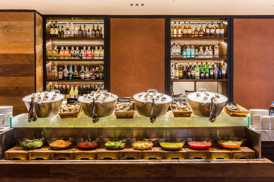 Quality reigns supreme at the Seafood & Oyster Bar. Indulge in impeccable selections: tender sea bass, succulent salmon, plump scallops, and pristine white fish. The undeniable stars, however, are the ice-chilled, briny-fresh jumbo oysters, presented with a vibrant array of sauces including a punchy crushed garlic option. Pro Tip: Visit Friday through Sunday evenings for the elevated ‘Top Shelf’ experience featuring Alaska King Crab legs and five premium oyster varieties. This station is a must for connoisseurs.