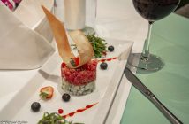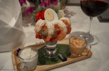 Our evening starts with a Thai Sharing Platter – chicken satays, spring rolls, crispy pork wontons and suitable dipping sauces; a Prawn Cocktail atop iceberg lettuce and accompanied by two cocktail sauces; and my personal favourite, a fresh Yellowfin Tuna Tartare flavoured with Citrus & Ginger sitting on a bed of diced avocado and cucumber. A great start to the meal.