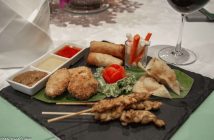 The Beach (restaurant) at Anantasila serves breakfast, lunch and dinner and our group has come for dinner. The two-tiered terrace fronting the beach is inviting. Generously sized tables with comfortable seating, crisp table linen, candles flickering, and wine glasses gleaming in the subdued light. Add to that, welcoming attentive staff, Khao Takiab beach and the ocean to gaze out on – and it’s an irresistible setting!