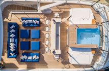 M/Y “Spectre” (FB269) is a full custom 69-meter (226 feet) megayacht, with a steel hull and an aluminium superstructure arranged on five decks, featuring a swimming pool and a ‘touch and go’ helipad. Accommodating 12 guests in unparalleled comfort, the layout features two owner’s cabins (one has a private terrace, a sun lounging area and a hydromassage tub), two VIP cabins on the Main Deck and two guest cabins on the lower deck.