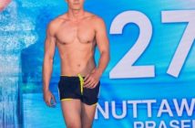 Similar in scope and style as the much more well-known female beauty contests, the Mr. National Thailand competition started with a runway parade where each candidate was introduced with all dressed in casual sportswear. The catcalls from the women in the audience went into a high fever pitch as the men next came out in their swimsuits, all designed by Franco, another sponsor for the evening.