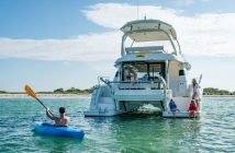Other boats shown by Simpson at the Ocean Marina Pattaya Boat Show include the Lagoon 42 and the Aquila 44. The Lagoon 42 is sleek and modern. A bimini top provides protection from sun, while a sliding panel in the top still gives a great view of the sails above. The owner has the luxury to choose between three or four staterooms. The catamaran’s U-shaped galley is fitted with wide counters and the large rectangular hull windows brings plenty of light into the staterooms and was the “Best Sailing Catamaran” winner at the Asia Boating Awards 2016.